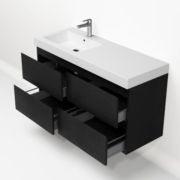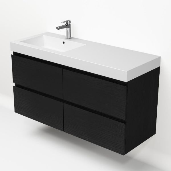 | Bellanti Gisella/Esta-q badmeubel 120x46 4 softclose laden zwart mat eiken greeploos quartz wastafel mat wit links met 1 kraangat |