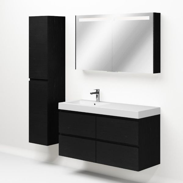 | | Bellanti Gisella/Esta-q badmeubel 120x46 4 softclose laden zwart mat eiken greeploos quartz wastafel mat wit links met 1 kraangat |