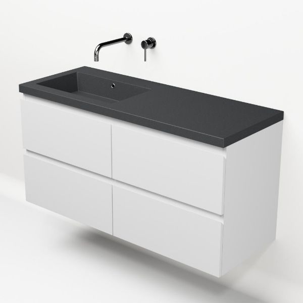| Bellanti Gisella/Esta-Q badmeubel 120x46 4 softclose laden wit mat greeploos quartz wastafel mat grijs links zonder kraangaten |