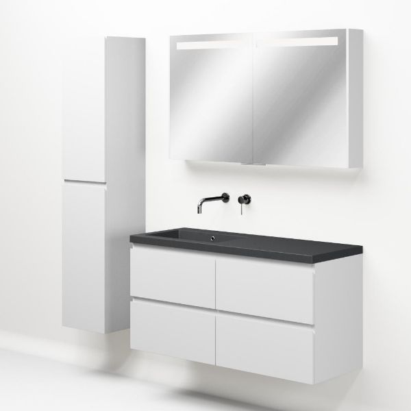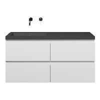 | | Bellanti Gisella/Esta-Q badmeubel 120x46 4 softclose laden wit mat greeploos quartz wastafel mat grijs links zonder kraangaten |