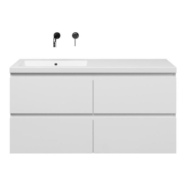 Bellanti Gisella/Esta-Q badmeubel 120x46 4 softclose laden wit hoogglans greeploos quartz wastafel mat wit links zonder kraangaten