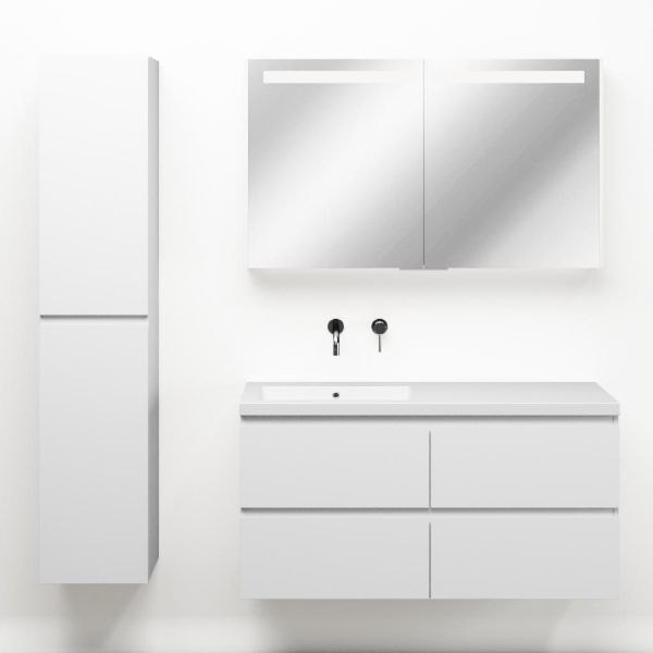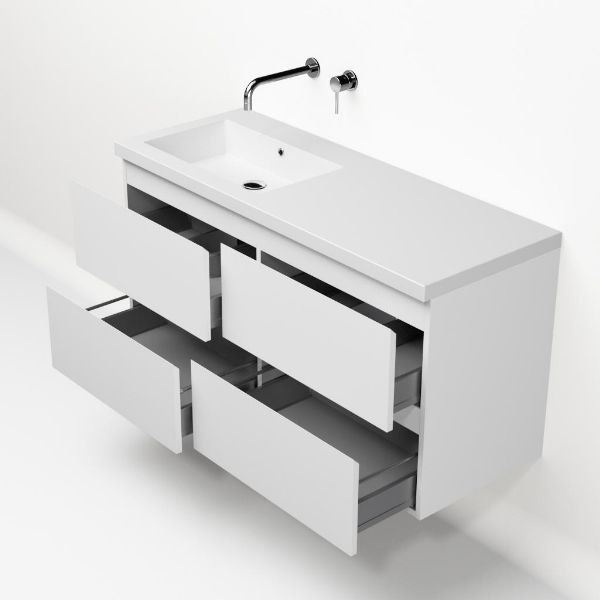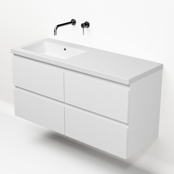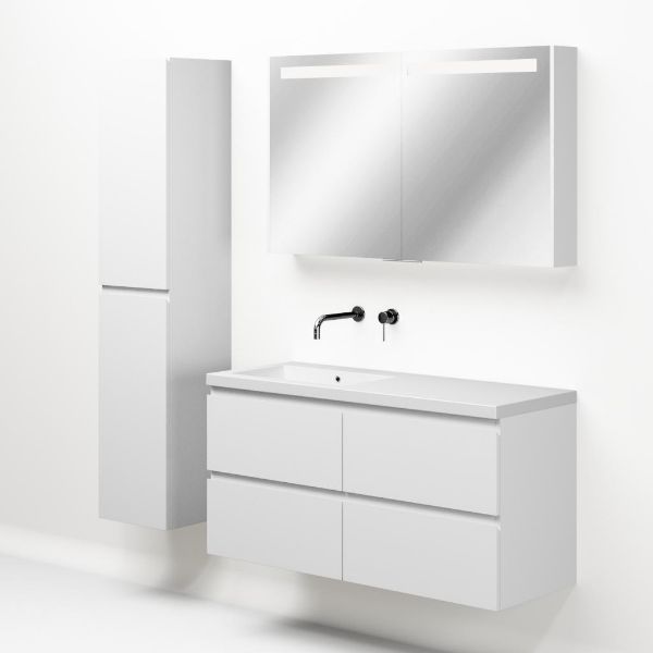 Bellanti Gisella/Esta-Q badmeubel 120x46 4 softclose laden wit mat greeploos quartz wastafel mat wit links zonder kraangaten