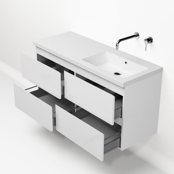 | Bellanti Gisella/Esta-Q badmeubel 120x46 4 softclose laden wit hoogglans greeploos polystone wastafel mat wit rechts zonder kraangaten |