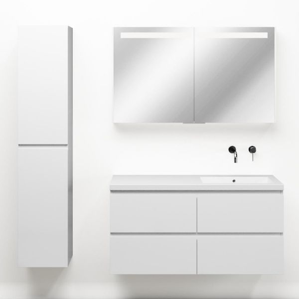 | | Bellanti Gisella/Esta-Q badmeubel 120x46 4 softclose laden wit hoogglans greeploos polystone wastafel mat wit rechts zonder kraangaten |