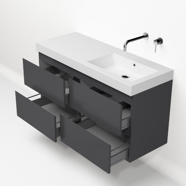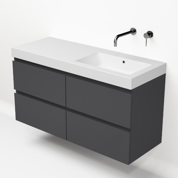 | Bellanti Gisella/Esta-Q badmeubel 120x46 4 softclose laden antraciet mat greeploos quartz wastafel mat wit rechts zonder kraangaten |
