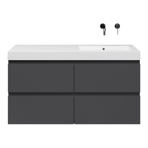 | | Bellanti Gisella/Esta-Q badmeubel 120x46 4 softclose laden antraciet mat greeploos quartz wastafel mat wit rechts zonder kraangaten |