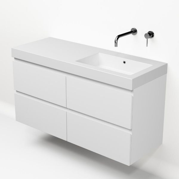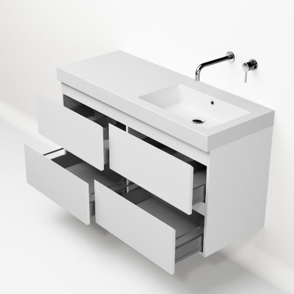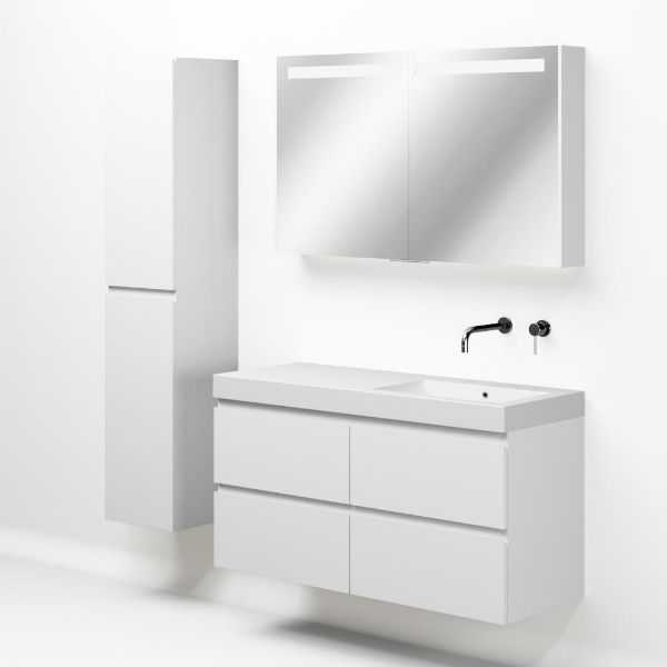 | Bellanti Gisella/Esta-Q badmeubel 120x46 4 softclose laden wit mat greeploos quartz wastafel mat wit rechts zonder kraangaten |