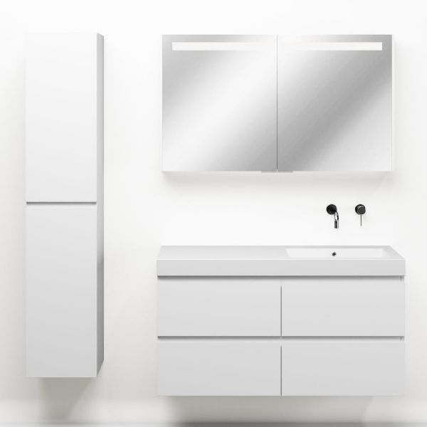 | | Bellanti Gisella/Esta-Q badmeubel 120x46 4 softclose laden wit mat greeploos quartz wastafel mat wit rechts zonder kraangaten |