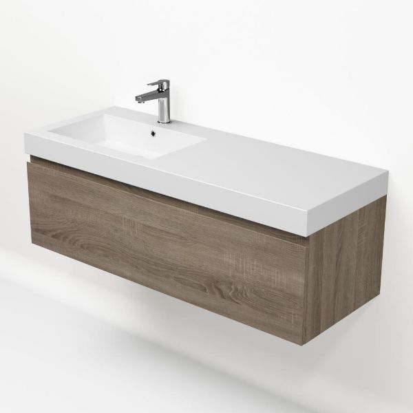 | Bellanti Solo/Esta-q badmeubel 120x46 1 softclose lade eiken donker greeploos quartz wastafel mat wit links met 1 kraangat |