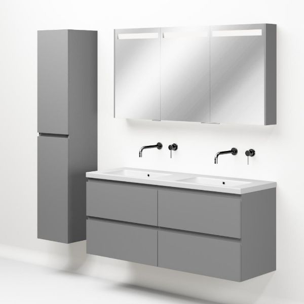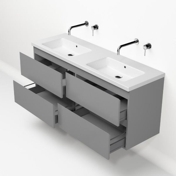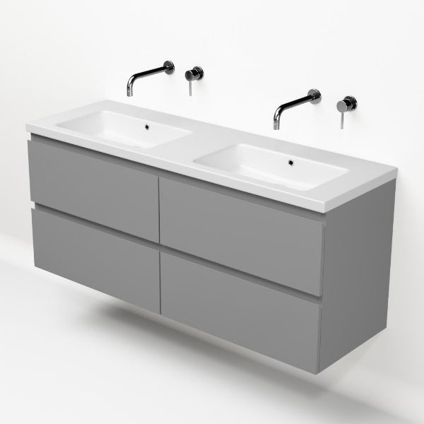 | Bellanti Gisella/Amelia badmeubel 140x46 4 softclose laden licht grijs mat greeploos keramiek wastafel dubbel mat wit zonder kraangaten |