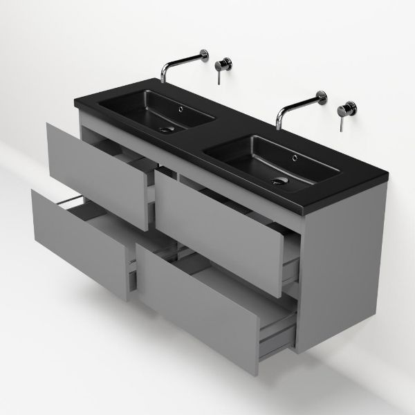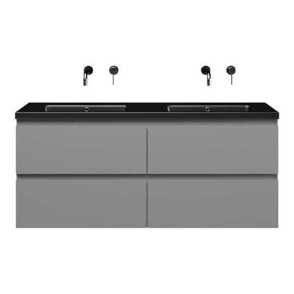 | Bellanti Gisella/Amelia badmeubel 140x46 4 softclose laden licht grijs mat greeploos keramiek wastafel dubbel mat zwart zonder kraangaten |