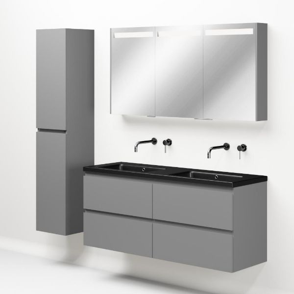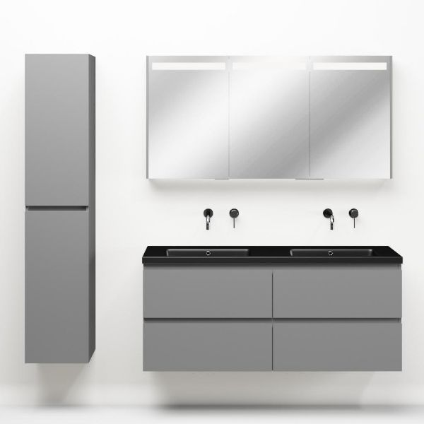 | | Bellanti Gisella/Amelia badmeubel 140x46 4 softclose laden licht grijs mat greeploos keramiek wastafel dubbel mat zwart zonder kraangaten |