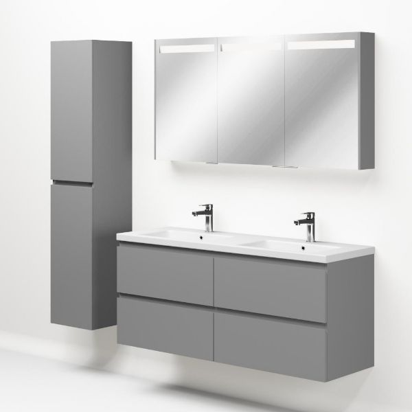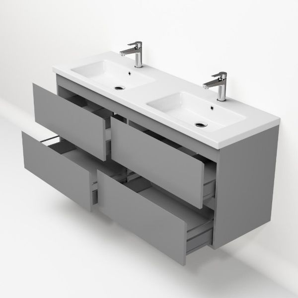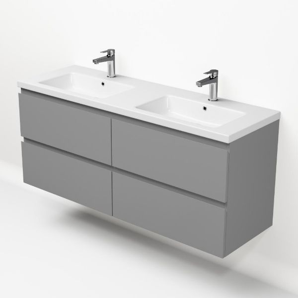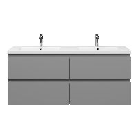 | Bellanti Gisella/Amelia badmeubel 140x46 4 softclose laden licht grijs mat greeploos keramieke wastafell dubbel wit met 2 kraangaten |