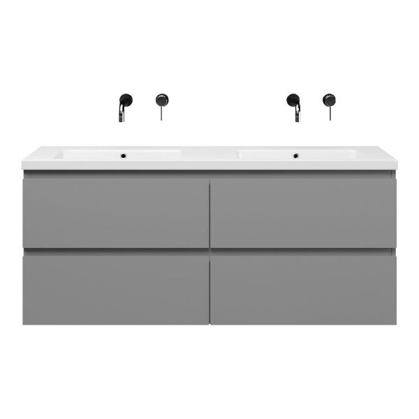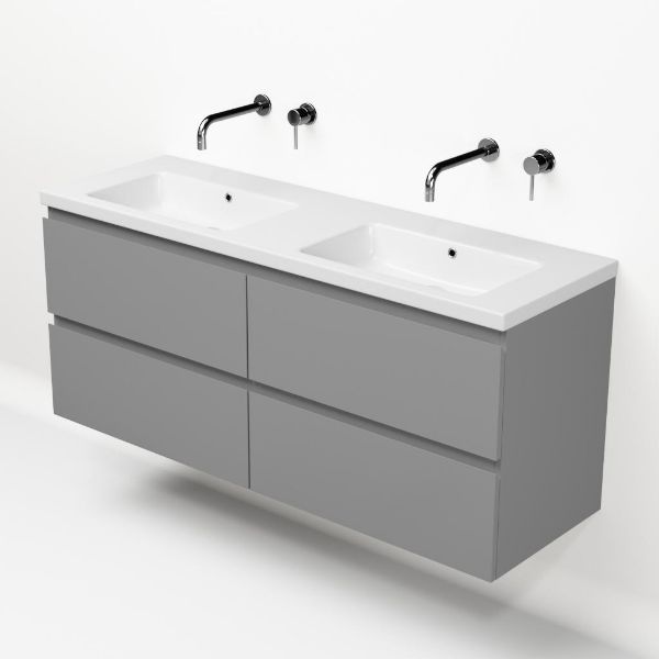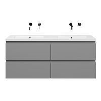 | Bellanti Gisella/Amelia badmeubel 140x46 4 softclose laden licht grijs mat greeploos keramische wastafel dubbel wit glans zonder kraangaten |