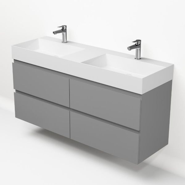 | Bellanti Gisella/Azzurra badmeubel 140x46 4 softclose laden licht grijs mat greeploos keramische wastafel dubbel wit glans met 2 kraangaten |