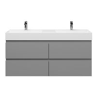 | | Bellanti Gisella/Azzurra badmeubel 140x46 4 softclose laden licht grijs mat greeploos keramische wastafel dubbel wit glans met 2 kraangaten |