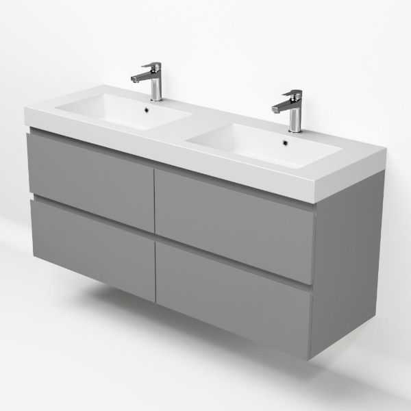 Bellanti Gisella/Esta-Q badmeubel 140x46 4 softclose laden licht grijs mat greeploos polystone wastafel dubbel mat wit met 2 kraangaten