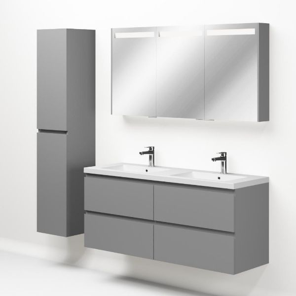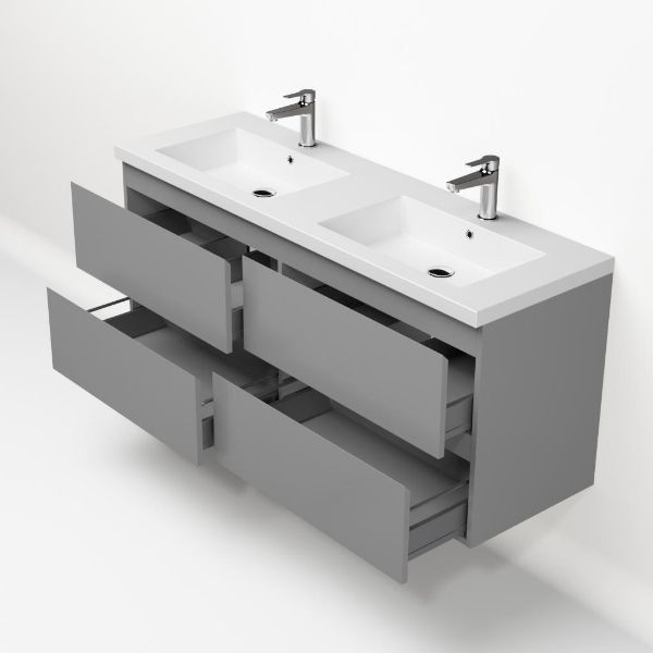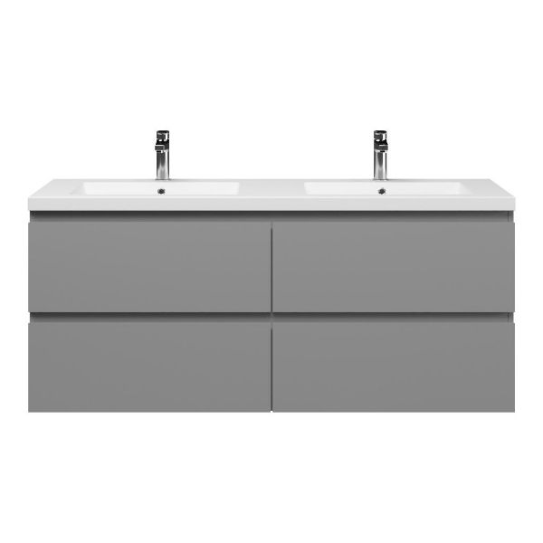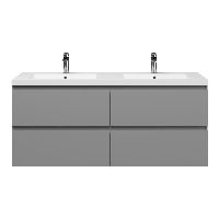 | | Bellanti Gisella/Esta-Q badmeubel 140x46 4 softclose laden licht grijs mat greeploos polystone wastafel dubbel mat wit met 2 kraangaten |