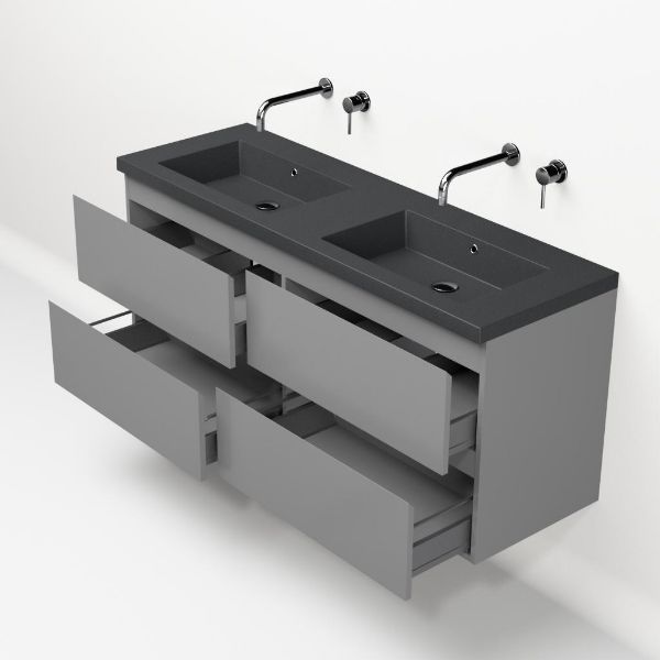 | Bellanti Gisella/Esta-Q badmeubel 140x46 4 softclose laden licht grijs mat greeploos quartz wastafel dubbel mat grijs zonder kraangaten |