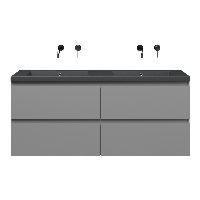 | | Bellanti Gisella/Esta-Q badmeubel 140x46 4 softclose laden licht grijs mat greeploos quartz wastafel dubbel mat grijs zonder kraangaten |