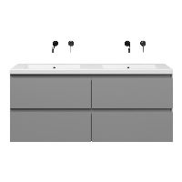 | | Bellanti Gisella/Esta-Q badmeubel 140x46 4 softclose laden licht grijs mat greeploos quartz wastafel dubbel mat wit zonder kraangaten |