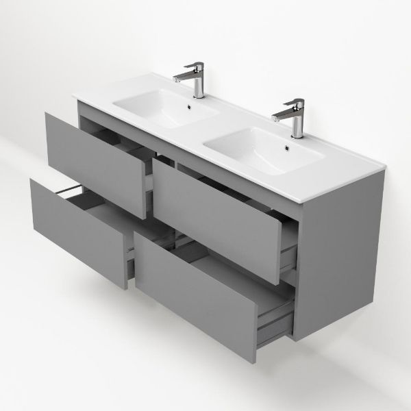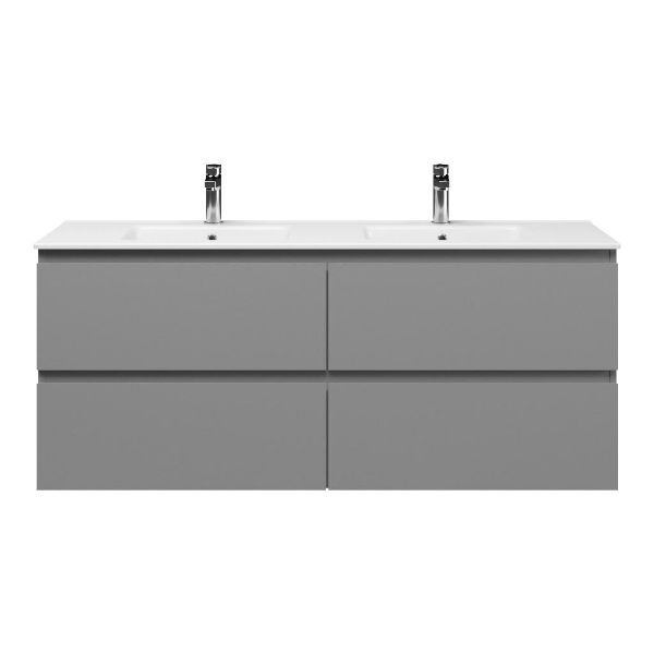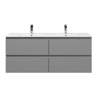 | Bellanti Gisella/Etna badmeubel 140x46 4 softclose laden licht grijs mat greeploos keramische wastafel dubbel wit met 2 kraangaten |