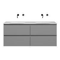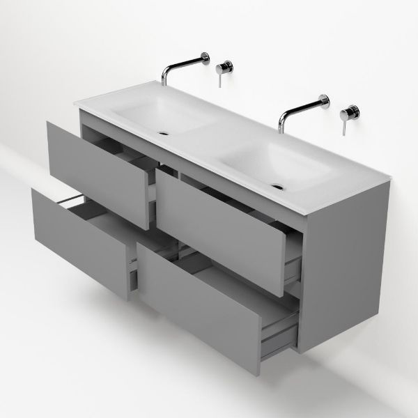 | | Bellanti Gisella/Glass badmeubel 140x46 4 softclose laden licht grijs mat greeploos glazen wastafel dubbel wit zonder kraangaten |