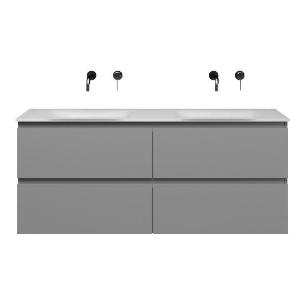 | Bellanti Gisella/Glass badmeubel 140x46 4 softclose laden licht grijs mat greeploos glazen wastafel dubbel wit zonder kraangaten |