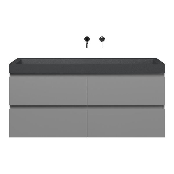 | | Bellanti Gisella/Renzo-q badmeubel 140x46 4 softclose laden licht grijs mat greeploos quartz wastafel mat grijs zonder kraangaten |