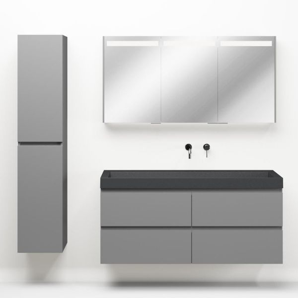 | Bellanti Gisella/Renzo-q badmeubel 140x46 4 softclose laden licht grijs mat greeploos quartz wastafel mat grijs zonder kraangaten |