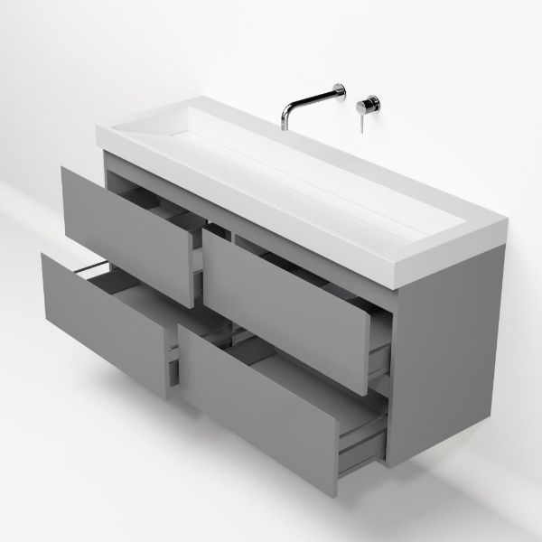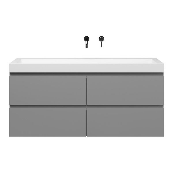 | | Bellanti Gisella/Renzo-q badmeubel 140x46 4 softclose laden licht grijs mat greeploos quartz wastafel mat wit zonder kraangaten |