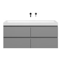 | Bellanti Gisella/Renzo-q badmeubel 140x46 4 softclose laden licht grijs mat greeploos quartz wastafel mat wit zonder kraangaten |