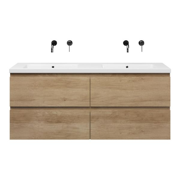 | | Bellanti Elena/Amelia badmeubel 140x46 4 softclose laden olm greeploos keramische wastafel dubbel wit glans zonder kraangaten |