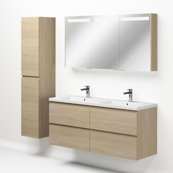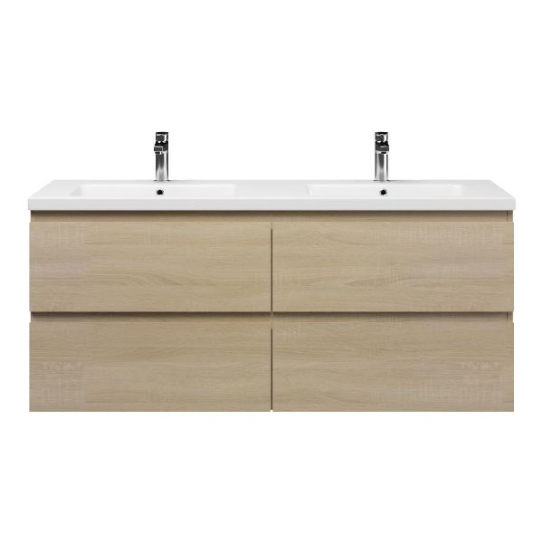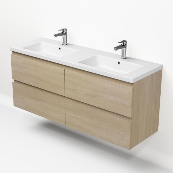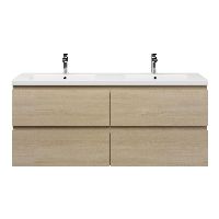 | | Bellanti Elena/Amelia badmeubel 140x46 4 softclose laden licht eiken greeploos keramieke wastafell dubbel wit met 2 kraangaten |