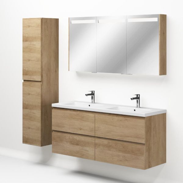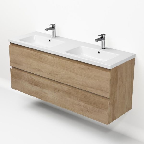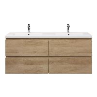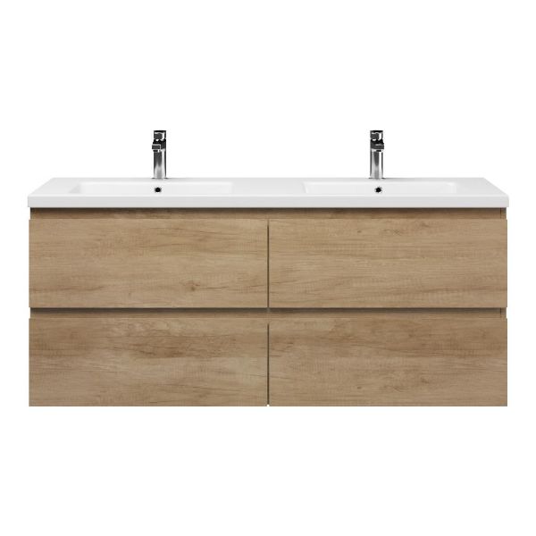 | Bellanti Elena/Amelia badmeubel 140x46 4 softclose laden olm greeploos keramieke wastafell dubbel wit met 2 kraangaten |