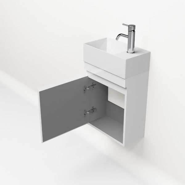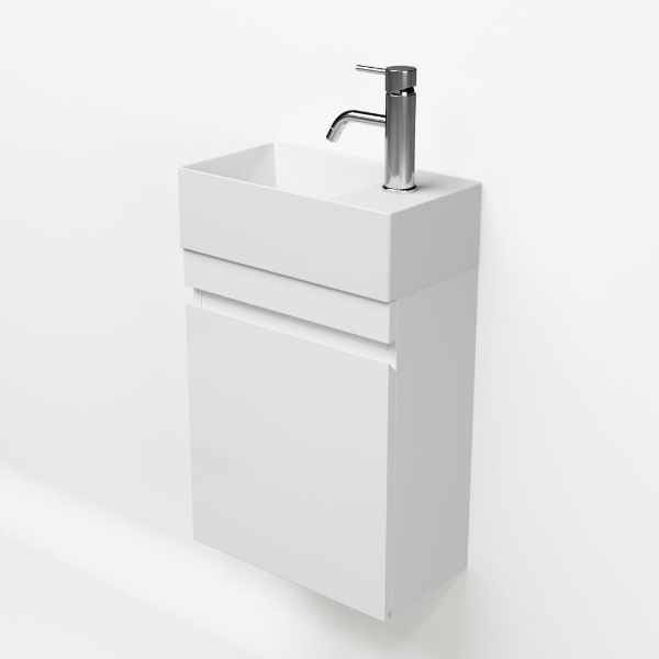 | | Bellanti Bona/Azzurra fonteinmeubel 40x22cm hoogglans wit met keramiek glans wit fontein met kraangat links/rechts |
