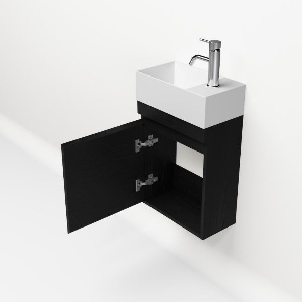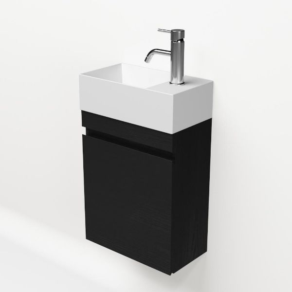 | Bellanti Bona/Azzurra fonteinmeubel 40x22cm mat zwart eiken met keramiek mat wit fontein met kraangat links/rechts |