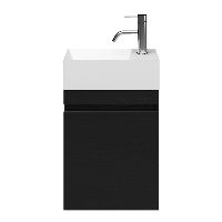 | | Bellanti Bona/Azzurra fonteinmeubel 40x22cm mat zwart eiken met keramiek mat wit fontein met kraangat links/rechts |