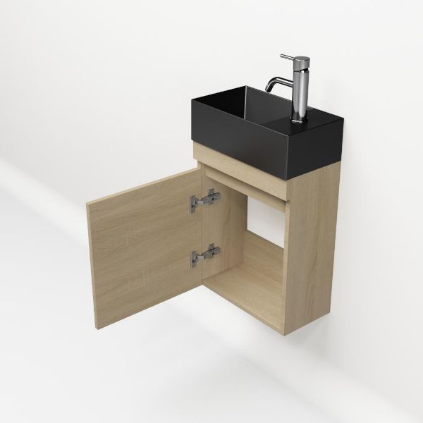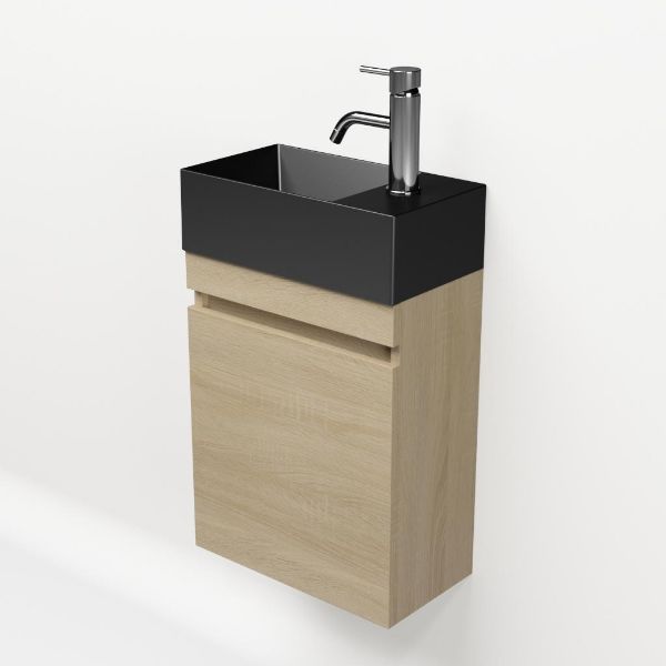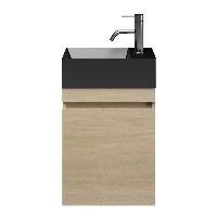 | Bellanti Bona/Azzurra fonteinmeubel 40x22cm licht eiken met keramiek mat zwart fontein met kraangat links/rechts |