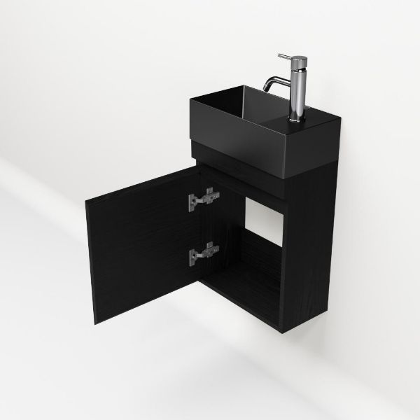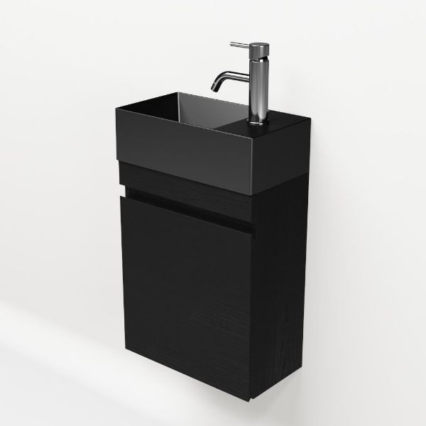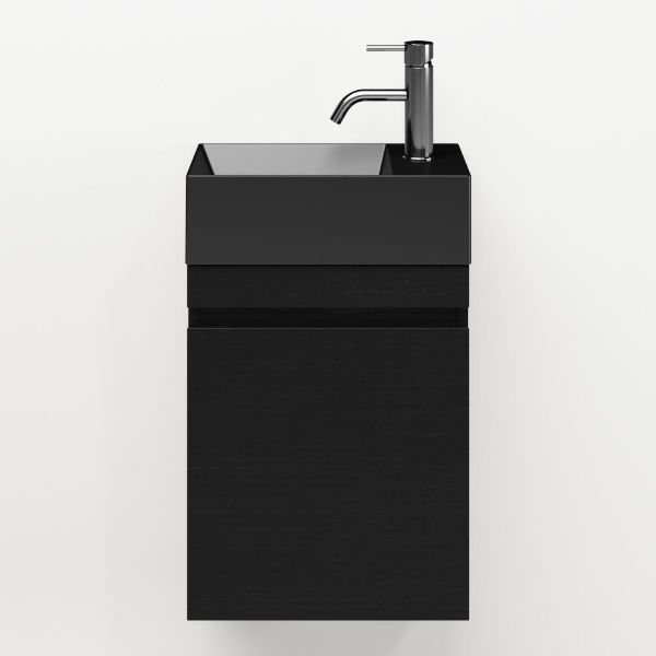 | Bellanti Bona/Azzurra fonteinmeubel 40x22cm mat zwart eiken met keramiek mat zwart fontein met kraangat links/rechts |