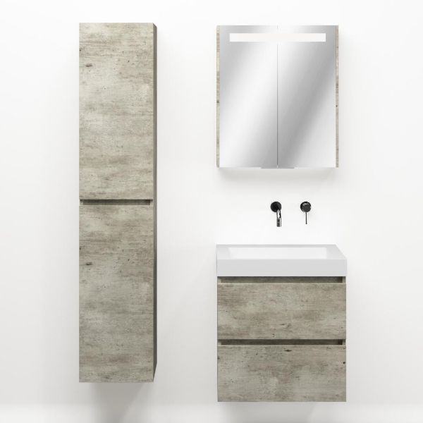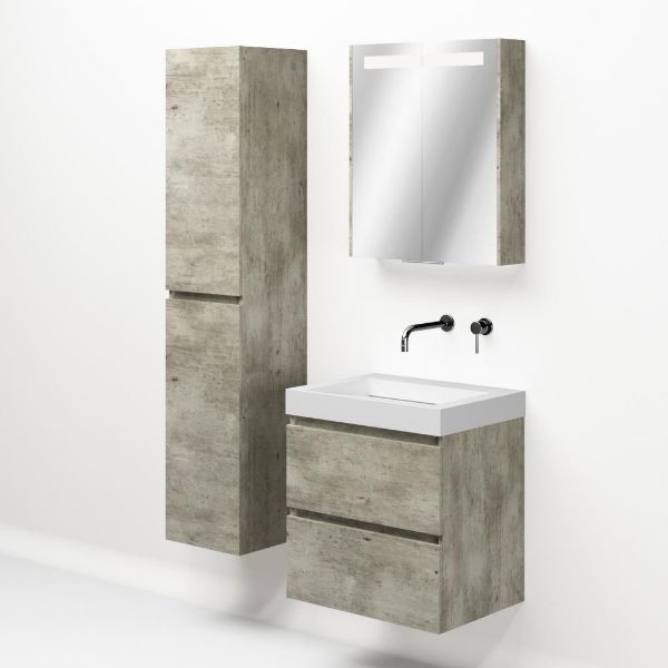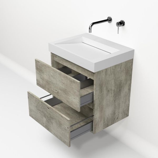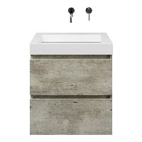 | | Bellanti Elena/Solid badmeubel 60x46 2 softclose laden steigerhout licht grijs greeploos solid wastafel mat wit zonder kraangaten |