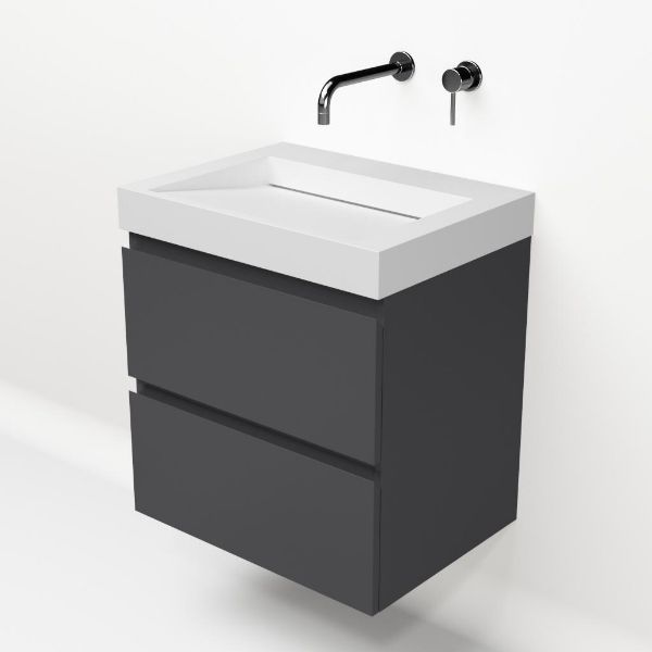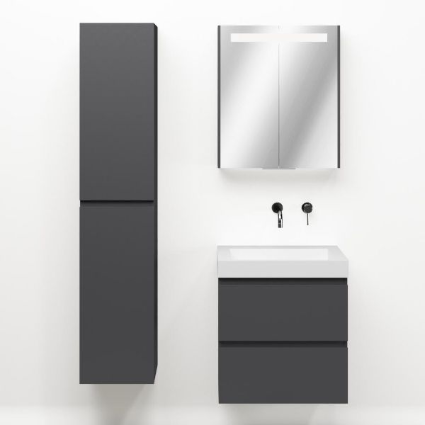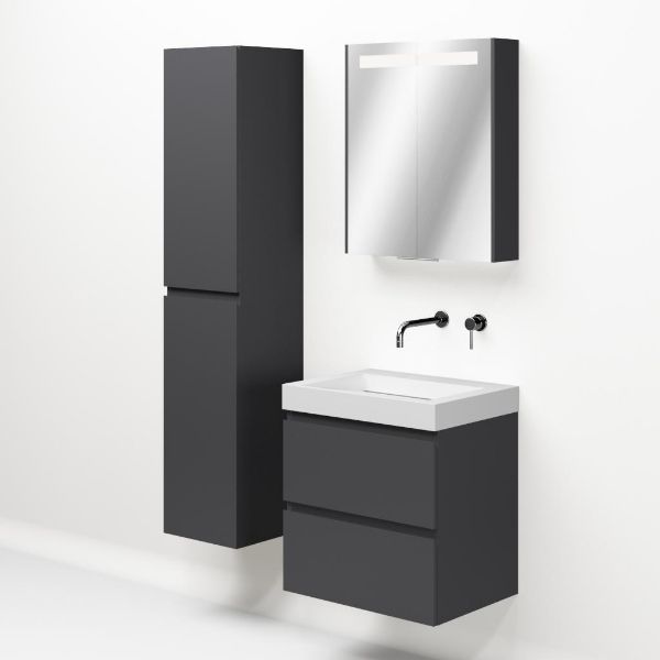 | | Bellanti Gisella/Solid badmeubel 60x46 2 softclose laden antraciet mat greeploos solid wastafel mat wit zonder kraangaten |