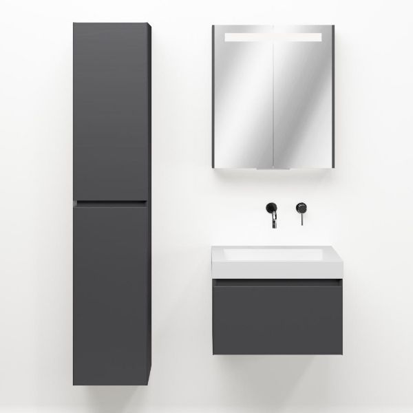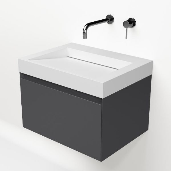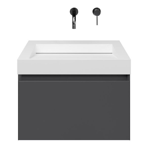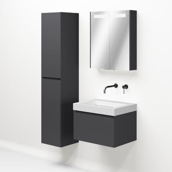 | Bellanti Solo/Solid badmeubel 60x46 1 softclose lade antraciet mat greeploos solid wastafel mat wit zonder kraangaten |