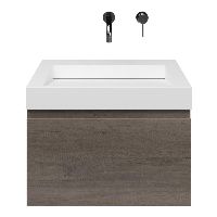 | | Bellanti Solo/Solid badmeubel 60x46 1 softclose lade olm donker grijs greeploos solid wastafel mat wit zonder kraangaten |