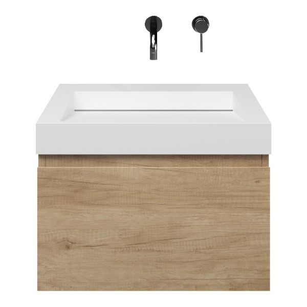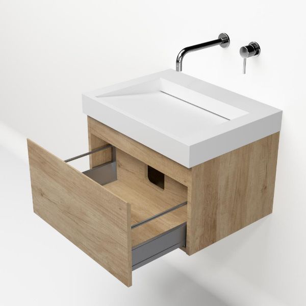 | | Bellanti Solo/Solid badmeubel 60x46 1 softclose lade olm greeploos solid wastafel mat wit zonder kraangaten |