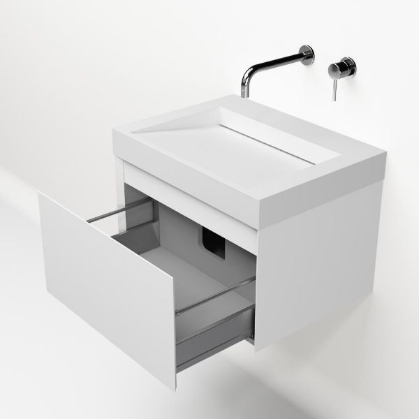 | | Bellanti Solo/Solid badmeubel 60x46 1 softclose lade wit mat greeploos solid wastafel mat wit zonder kraangaten |