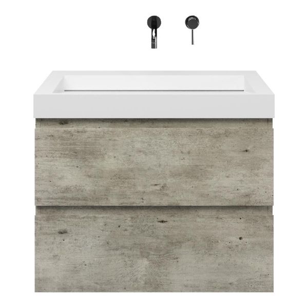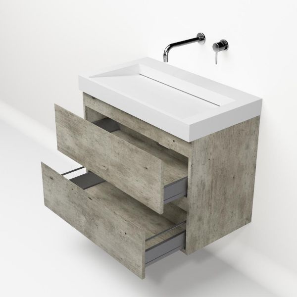 | | Bellanti Elena/Solid badmeubel 80x46 2 softclose laden steigerhout licht grijs greeploos Solid surface wastafel wit zonder kraangaten |