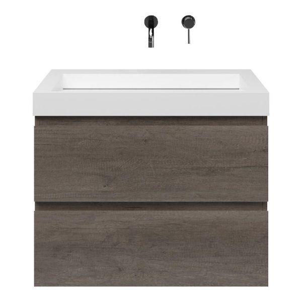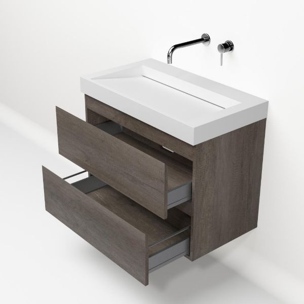 | | Bellanti Elena/Solid badmeubel 80x46 2 softclose laden olm donker grijs greeploos solid surface wastafel mat wit zonder kraangaten |