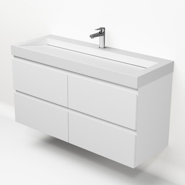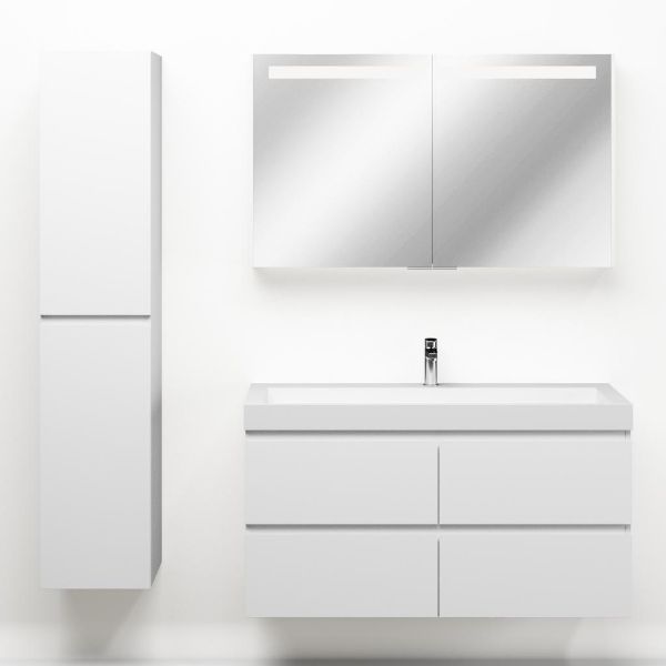 | Bellanti Gisella/Solid badmeubel 120x46 4 softclose laden wit mat greeploos solid surface wastafel mat wit met 1 kraangat |