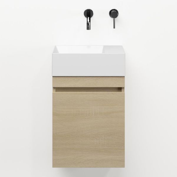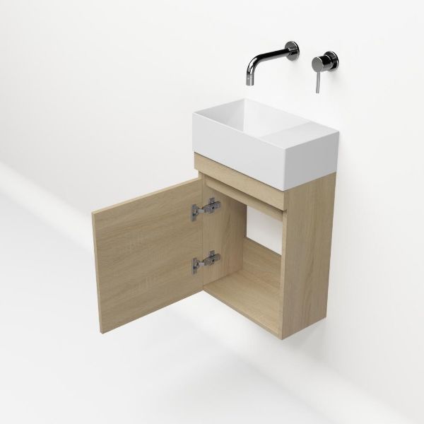 | Bellanti Bona/Azzurra fonteinmeubel 40x22cm licht eiken met glans wit keramiek fontein ZONDER kraangat links/rechts |